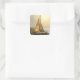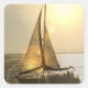 O veleiro a navegar ao anoitecer com o sol a começar a pôr-se.