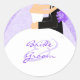 Etiquetas personalizadas de casamento com uma noiva de moda e design de noiva em um fundo roxo de espiral. Perfeito para favores de casamento, obrigado de casamento que você dá, ou favores de chá de panela. Obtenha os convites e a postagem correspondentes para concluir a aparência. Imagem © JD Designs Digi
