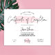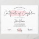 Certificado de Conclusão Feminina com elegante fundo de aquarela rosa. Perfeito para completar prêmios para cursos profissionais. Use-o para certificado de lash ou diploma de salão de beleza. Este design de certificado de acreditação apresenta fonte manuscrita moderna e design e espaço de marca d'água para detalhes e logotipos de sua empresa. Perfeito para criar prêmios de conclusão para seus alunos.
