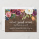 convites de festas personalizados de barato para aquecimento doméstico personalizados com os detalhes do seu partido. Este design de tendência apresenta uma borda floral de cor d'água boho em cores rústicas quentes em cores de queda em um fundo de madeira falsa. O verso tem um fundo de aquarela de abstrato ou use o espaço para texto adicional, se necessário. Use as ferramentas de design para personalizar o texto, editar as fontes e as cores ou adicionar suas próprias fotos para criar seus próprios convites exclusivos para a festa de aquecimento doméstico.