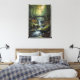 A serene forest scene featuring a rustic wooden bridge above cascading waterfalls, surrounded by mossy rocks and soft autumn foliage. The warm light filtering through the trees creates a peaceful, immersive atmosphere perfect for nature lovers and tranquil home décor. This high-quality artwork brings depth, calm, and elegance to any space.