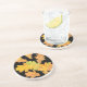 Portas copos na moda com uma design colorida de folhas de carvalho de outono num fundo preto.