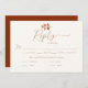 Um pequeno ramo da faia de cobre cai a folhagem em aquarela e um esquema de cor de cobre e ferrugem enfeita esta elegante, simples, elegante e moderna placa rsvp de casamento outono com escolha de refeição e um código QR. Apresenta caligrafia moderna e elegante com amplos florescimentos. Luxuoso, mas simples, clássico, mas chique, moderno, mas eterno. Uma escolha encantadora para um casamento no outono com cobre, laranja queimada, terracota, bege, vermelho, laranja e outras matizes de outono.