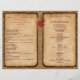 Este maravilhoso programa de núpcias do outono ou Ordem de Serviço em cores do outono de cor laranja queimada, ferrugem, ouro e marrom tem imagens de três folhas de ápice secas com um arco gêmeo IMPRESSO e vinho de burgueira escura IMPRESSOS, e um fundo de saca FAUX com uma camada de papel queimado envelhecida que corresponde ao convite de casamento outono mostrado abaixo. Se precisar de assistência para obter informações sobre o ajustado ou para alinhar corretamente, envie um e-mail para niteowlstudio@gmail.com. Seu documento será impressão como aparece no monitor. ELE NÃO será editado por erros de digitação ou alinhamento, etc., pela Zazzle. ****POR FAVOR, OBSERVE que o papel de mais alto é um estoque de cartão e não se dobra bem (racha o design ao longo da dobra, mesmo que você o afixe com uma borda afiada).