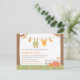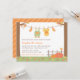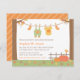 Convide seus convidados para um chá de fraldas de outono com este convite para chás de fraldas. Tem uma linha de tecido amarrada entre duas árvores. Na linha de vestidos estão roupas bonitas de bebês como meias, macacões e teias. No jardim estão abóboras e folhas de outono e um pássaro que está olhando nas abóboras! Paleta colorida de amarelo, laranja, verde e castanho, que é neutro em relação ao gênero e excelente tanto para bebês como para meninas! Ao contrário, há um simples padrão de listras inclinadas. Personalize facilmente com os detalhes do seu chá de fraldas.