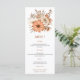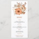 Menu de Casamento de Folhagem das Florestas de Cores d'Água do outono. Lindas flores de aquarela e folhagem em tons autóctones de castanho e creme, com um fundo teracotta marrom no fundo. A tipografia está em na moda e facilmente personalizada para seus próprios detalhes.