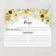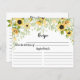 Belo cartão de receita floral de girassol amarelo-aquarela. A frente do cartão tem espaço para o título da receita, da cozinha de & ingredientes. O verso tem linha para direções. Visite o nosso compro para ver a coleção floral de blush de aquarelas.
