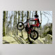 Uma motocicleta de salto rochoso. A fotografia teve um efeito poster, reduzindo o número de cores para que ele se destacasse.