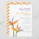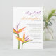 Este convite de casamento moderno apresenta um pássaro estilizado de flores do paraíso com novas fontes. Facilmente personalizado com suas informações de evento especial. ::ENVELOPES INCLUÍDO: