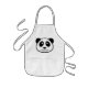 Caçoa o avental, caracterizando uma cara preto e branco dos panda´s.