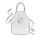 O avental bonito de uma criança caracteriza um unicórnio branco com uma cauda do arco-íris, uns corações cor-de-rosa e umas flores azuis. Personalize com nome para um presente especial.