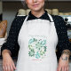 Christmasapron em estilo com nossa camiseta floral de Natal festiva moderna. Apresenta lindas flores pintadas manualmente em um esquema clássico e verde tradicional de cores. Personalize o avental adicionando seu nome personalizado detalhes personalizados em vermelho. O plano de fundo apresenta um branco. Arte original de Caroline Bonne Müller