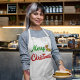 Avental Longo Merry Christmas Flying Reindeer red green script