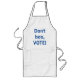 O avental longo mostra letras azuis lendo, "Não faça besteira, VOTE!" Democratas, liberais, progressistas precisam VOTAR! Seja político e faça ouvir sua voz. Assim como Barack Obama diz.