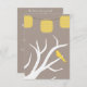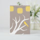 A design de cartão de resposta RSVP bonito é perfeita para seu casamento informal ou semissformal. Design apresenta os ramos de uma silhueta de árvore branca. Em um dos galhos espalhados está um pássaro amarelo-limão. Acima da árvore branca estão as lanternas de papel amarelo-limão penduradas como decorações de casamento. O design está sentado em uma cinza de tons de terra / fundo marrom. O reverso do cartão de resposta RSVP de casamento é o mesmo tom terra firme. Há texto em branco. O texto é totalmente personalizável para atender às suas necessidades de casamento. Pássaros Amarelos Em Uma árvore e Lanternas de Papel Também estão disponíveis Convites de Casamento e selos postais.