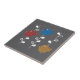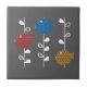Um pássaro xadrez, um pássaro azul e um pássaro de pente de mel saem entre as folhas de uma abstrato em um azulejo