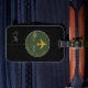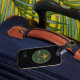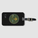 avião com etiqueta de bagagem esverdeada com nome