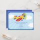 Primeiro convite para o aniversário do primeiro aniversário do avião divertido e moderno Inicie seu evento com nosso convite de aniversário de avião amarelo, vermelho e azul giro em um fundo azul com nuvens brancas. O convite do avião Trendy é perfeito para uma festa de aniversário de pilotos! Apenas personalize com suas informações e você está pronto para ir! Itens correspondentes, incluindo chás de fraldas postais, adesivos de favoritos, cartões de agradecimento e obrigado que você também está disponível em nosso compro. ©BlackLeaf Studios