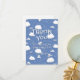 Este cartão de agradecimento plano temático de aviões de papel para festa de aniversário de menino ou menina apresenta vários aviões de papel brancos dobrados ilustrados com trilhas de voo curvas e tracejadas caprichosas entre nuvens brancas fofas em um fundo azul personalizável - por katz_d_zynes