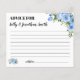 Aconselhamento floral azul para mamãe e Pai serem cartão de jogo de Chá de fraldas. Jogos das versões inglesa e espanhola incluídos (frente e verso). Adicione o nome da mãe e do Pai para as versões em inglês e espanhol. Para personalização adicional (alteração de texto, adição de uma foto, cor da fonte, estilo da fonte ), clique em personalizar, role para baixo e clique no link "clique para personalizar ainda mais". COMO JOGAR: Os convidados preencherão cartões para compartilhar seus melhores conselhos para o Casal Feliz.