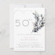 Estes convites de aniversário para adultos, pretos, brancos e dourados, elegantes, são concebidos com ramos de oliveiras pintados à mão. Personalize com os detalhes do seu dia especial para convites memoráveis clássicos para qualquer marco de aniversário
