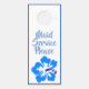 Este cabide de porta tem dois lados com duas flores azuis de hibisco [uma de cada lado]. O texto na frente diz "não perturbe", lê-se na parte traseira", serviço doméstico, por favor". Tanto a frente como a parte de trás estão bordadas com uma bela sombra de azul real para coordenar com as flores. Personalize este item de acordo com o seu gosto com qualquer cor ou frase de fundo ou de fundo que desejar, ou comprar conforme projetado.
