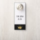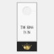 Este cabide de porta é de dois lados e coroado com uma coroa de ouro no fundo. Bordas superiores cercadas por uma borda de cinza prateada com texto de exemplo de "O Rei Está Dentro". Personalize este item de acordo com o seu gosto com qualquer cor ou frase desejada, ou comprar como projetado.