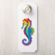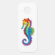 Articulação artificial, brilhante, arco-íris, cavalo de mar poligonal sobre fundo branco. Tatuagem brilhante.