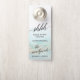 Estes cabides de convidados de casamento aqua e dourados são perfeitos para um casamento de destino tropical. A simples e moderna design apresenta uma espantosa turquesa, uma cor azul-lacrimogênea e lacrimogênea com um brilho de ouro macio que lembra a areia e o mar. É aliado a uma caligrafia elegante. Forneça estas etiquetas de porta para os convidados do hotel para que eles possam descansar bastante para se recuperarem do seu casamento. Nota: Este design não apresenta brilho de ouro real. É um gráfico de alta qualidade feito para se parecer com um martelo de ouro.