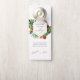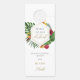 Corredor de porta para celebração de casamento temático tropical com folhas tropicais e caligrafia dourada.
