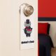 Are you looking for a fun gift for the musician in your life? This cute door hanger features a gray kawaii cat playing a snare drum while wearing a navy blue and red marching band uniform.