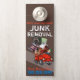 Tem um caminhão e quer ganhar dinheiro arrastando, movendo e removendo coisas de pessoas? Muitas pessoas não têm como se livrar ou mover itens grandes, então se você anunciar que você tem um caminhão, alguns músculos e é profissional, você tem todos os fazeres de um negócio de excelentes. Este cartão diz "profissional, mas simpático e confiável." Ilustração de cara amigável no caminhão de coleta de vintage vermelho carregado com móveis e lixo. O texto e as cores são personalizáveis. Excelente também de anunciar um negócio em movimento, uma organização de garagem/sótão ou vendas de barganhas. Trabalho de verão excelente para ganhar dinheiro extra!