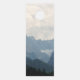Cabeça de porta com uma fotografia de belas montanhas, céu nublado e colinas rolantes cheias de árvores em primeiro plano. esquema de cor azul da cinza.