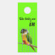 Este cabide de porta pode salvar a vida do seu pássaro! Mantenha este alerta de segurança na sua maçaneta para que a família e os visitantes saibam quando os pássaros estão soltos e quando estão presos na sua gaiola. Evite fugas e acidentes e mantenha a sua família presa segura. <3 Gráficos de periquito do Greencheek Conure com cores brilhantes para lembrar rapidamente. Este sinal útil faz um presente prático para os donos de papagaios de estimação.