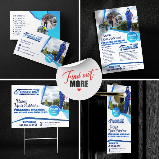 Faça um salto com sua empresa de lavagem de pressão usando este modelo de cabide de porta versátil e profissional! Mostre seus serviços e atraia novos clientes com este design personalizável, com espaço para seu logotipo, detalhes de contato e ofertas especiais. Ideal para serviços residenciais e comerciais de lavagem de pressão.
