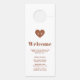 Personalizável cabide de porta de casamento com tipografia ousada retrógrada com sotaque cardíaco. Este corredor da porta do casamento é uma forma perfeita de receber convidados. Conte aos seus convidados sobre as atividades do casamento, listando os detalhes no fundo do cabide da porta. Outras cores estão disponíveis.