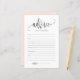 Adicione este cartão de conselho simples e elegante ao seu casamento. Ele apresenta uma escrita branca preta, tipografia clássica, fundo rosa-claro. Você pode personalizar a parte frontal e traseira desta placa de chá de fraldas. Este conselho para o cartão de recém-casados é perfeito para qualquer tema de casamento e estação.