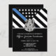 Este design apresenta uma bandeira da polícia com listras pretas e brancas, e uma fina faixa azul de linha também. O crachá da polícia e o texto prateado estão acima de todos os detalhes do partido para os detalhes do polícia aposentado, xerife, capitão ou chefe do partido aposentado.