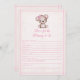 Urso-bebê marrom e rosa adorável para o chá de fraldas de uma menina. Aconselhamento para jogo de chá de fraldas de Mamãe. Cobertura cor-de-rosa com borda pontilhada rosa para fundo. Modelos fornecidas atrás.