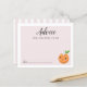 Cartões de chá de fraldas de tema bonito e bonito com arte ilustrada à mão de uma fruta laranja com uma flor branca. Este design cor-de-rosa é perfeito para um chá feminino.
