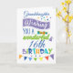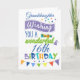 Desejando a sua neta um aniversário maravilhoso em estilo. Este cartão brilhante e colorido é adequado para uma grande variedade de idades - e o número de idades pode ser alterado. Apresenta uma tipografia fofa numa mistura de cores azuis, roxas e verdes. Pequenos presentes, caninos e estrelas somam à comemoração de aniversário. O nome e a mensagem podem ser personalizados.