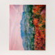 Reprodução de uma pintura aquosa da Montanha do Avô aplicada a uma quebra-cabeça. Um estilo paixão solto que é impressionista e colorido. Imagem tranquila por horas de relaxamento da brincadeira de quebra-cabeça.