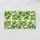 Um cartão de visita personalizado com uma fronteira simples, mas elegante, de ramos de oliveira verdes carregados de fruta e de folhas de rolagem suave num fundo falso de pergaminho.