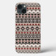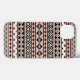 Um design do estilo Aztec em um padrão digital e vetorial com preto, branco, cinza e vermelho escuro em um fundo de cor de areia.