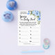 Azul floral Adivinha o cartão de jogo de chá de fraldas da Comida do Bebê. Jogos das versões inglesa e espanhola incluídos (frente e verso). Mude o nome da mãe para o modelo para as versões em inglês e espanhol. Para mais personalização (altere o número de linhas e qualquer outra redação, cor da fonte, estilo da fonte ), clique em personalizar, role para baixo e clique no link "clique para personalizar ainda mais". Tenham 10 comidas de bebês diferentes para os hóspedes provar e adivinhar o sabor de cada um. Convidados anotam seus palpites de cada sabor e a pessoa com as respostas mais corretas ganha!