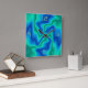 Um design azul incomum e verde brilhante. Este relógio artístico tem um efeito luminoso luminoso. Disponível em formas quadradas e redondas.