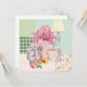 trabalho de arte de aquarela bonito no estilo de colagem, com ilustrações florais e de aquarela em azul, verde e rosa.