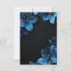 Cartão RSVP de casamento escuro com flores azuis e brilhos.
