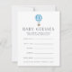 Deixem os chás de fraldas terem suas melhores palpites na data e hora de aniversário do bebê, peso e comprimento! Coloque uma pilha na entrada do evento, passe-as ou deixe uma em cada lugar. Faz uma manga divertida para a mamãe ser, também, quando compilada em uma caixa bonito ou um encadernador. Design apresenta uma ilustração azul e aqua aqua aqua, com uma inscrição moderna e um padrão sutil de diamante pontilhado no verso.