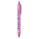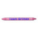 A caneta original de Briney da equipe, com texto azul.